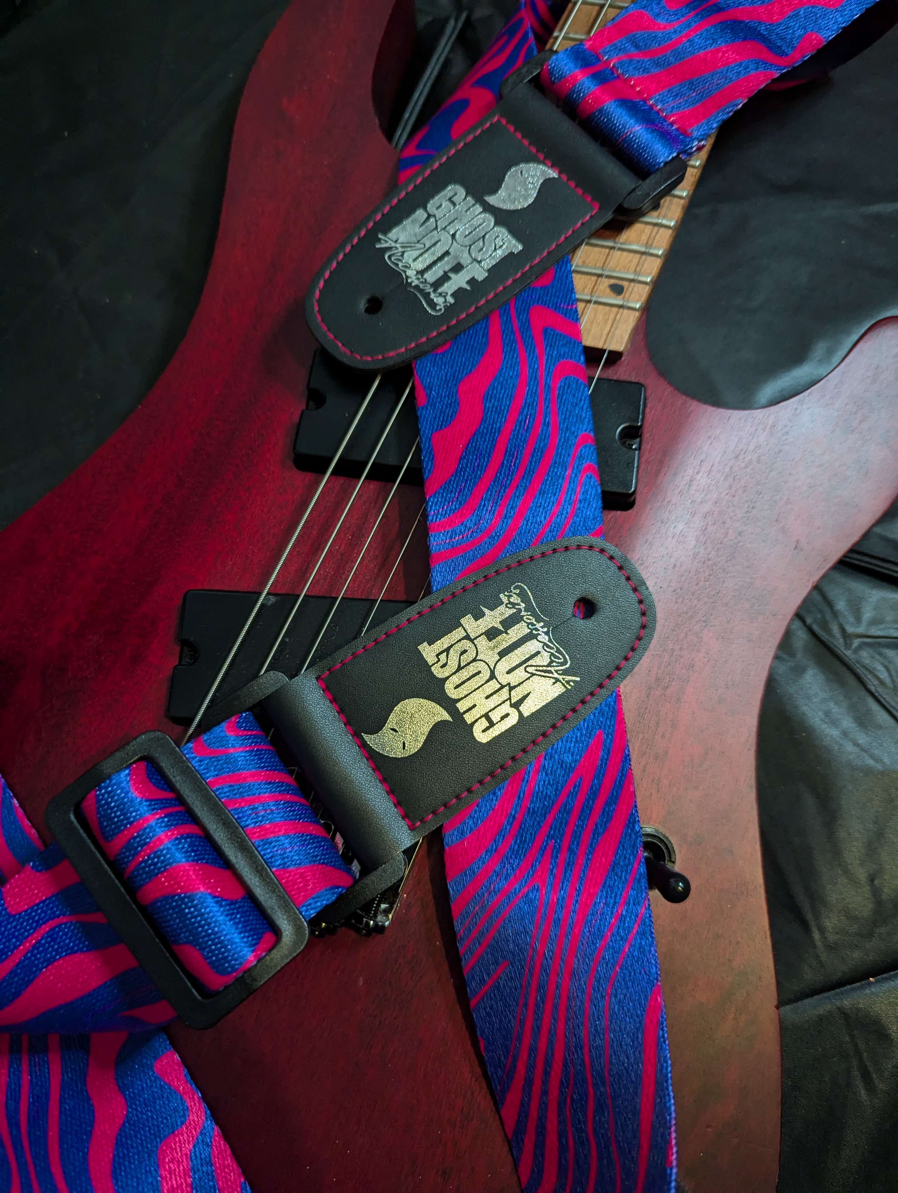 Part of our vibrant Swirl Series, this Pink on Purple guitar strap showcases bold pink waves cascading over a deep purple backdrop, reflecting the spirited essence of modern music. It's designed to catch the eye and evoke the dynamic rhythms of contemporary tunes.