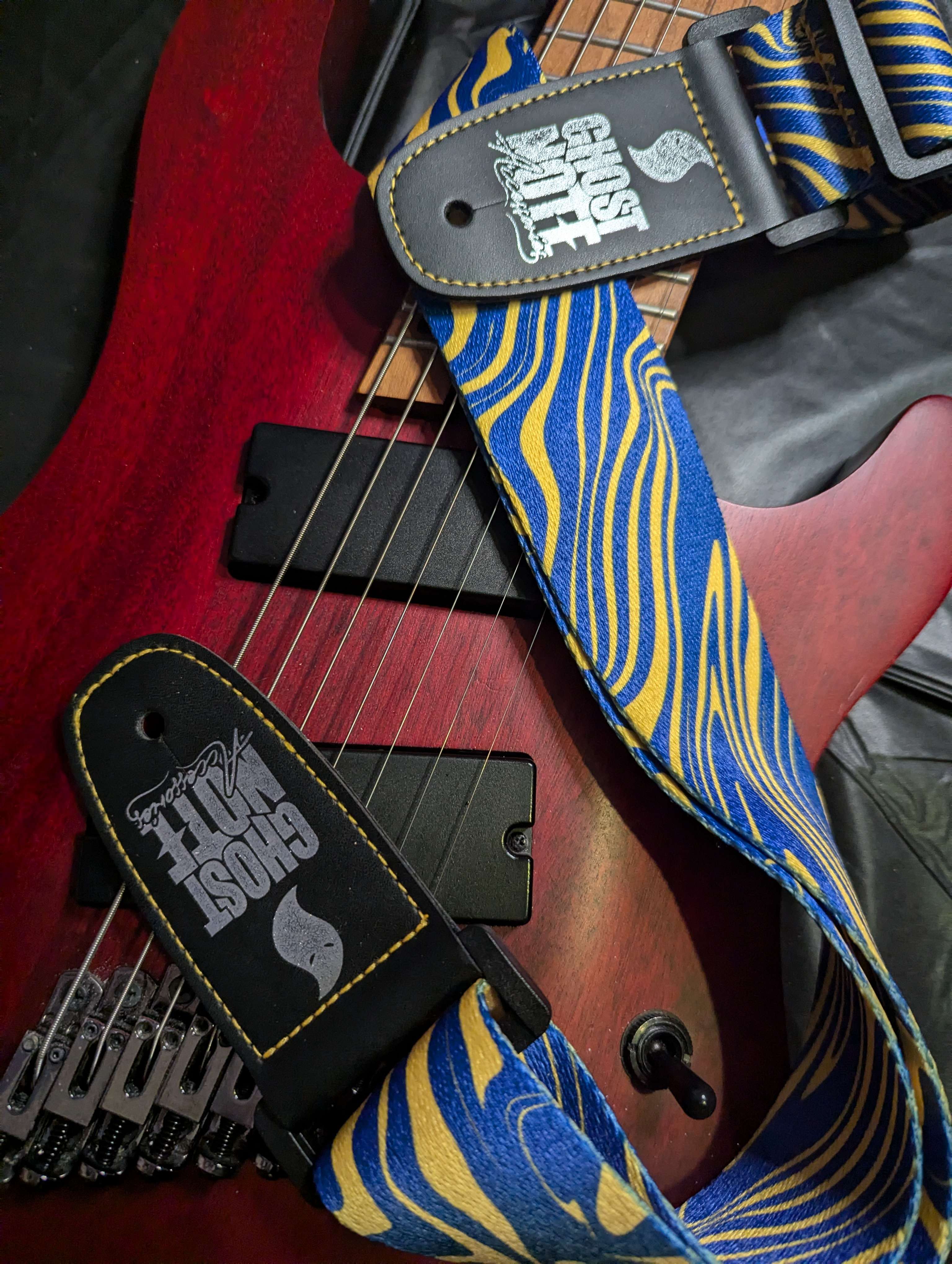 Vibrant and bold, the Blurple on Yellow guitar strap from our Swirl Series is inspired by the energetic vibes of alternative and heavier music. The striking contrast of deep purple swirls on a vivid yellow background is designed to captivate and energize, making every performance unforgettable.